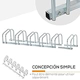 Râtelier 6 vélos - range-vélos - HOMCOM - support rangement pneu 65 mm sol ou mural vtt bmx - acier - 179x33x27cm - argent