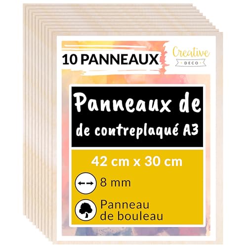 Creative Deco 10 x A3 Contreplaqué 8mm 420 x 300 x 8 mm (+-- 05mm) Planche Bois Bouleau Panneau Laser Pyrogravure Gravure