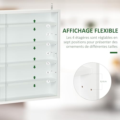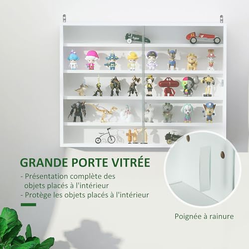 HOMCOM Vitrine pour Collection vitrine Murale 80 x 9,5 x 60 cm avec 4 étagères réglables en Hauteur et 2 Portes coulissantes en Verre, pour Collection de Figurines et Voitures Miniatures, Blanc