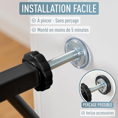 Barrière sécurité - IB STYLE - Berrin - Pas de perçage - Fixation par Pression- pour Enfants 6 a 24 Mois- 150-160 cm Noir