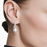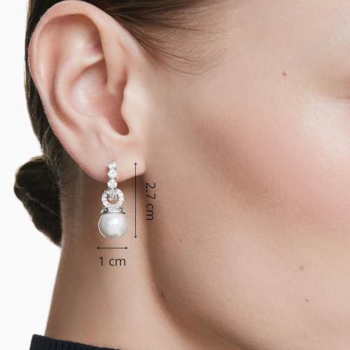 Swarovski Pendants d’oreilles Matrix, mini créoles ornées de cristaux ronds blancs accompagnées d'une perle de cristal ronde blanche suspendue, design délicat et raffiné, en métal rhodié
