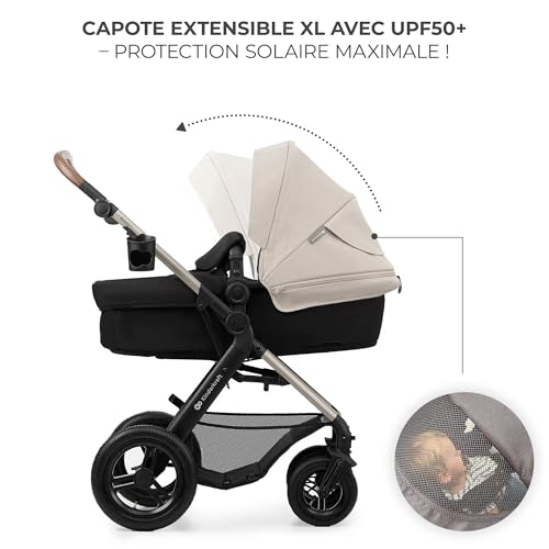 Kinderkraft MOOV2 AIR Poussette 3 en 1, Système de voyage de la naissance à 22 kg, Siège auto Mink PRO I-Size inclus, Capote extensible avec filtre UPF50+, Roues gonflables, Gris