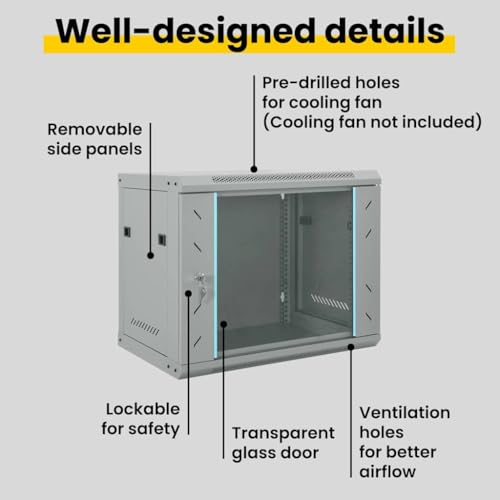 vidaXL Armoire réseau avec Stockage Gris 60 x 45 x 50 cm Acier, Meuble Moderne, Rangement de Bureau, Composants résistants, équipement Mural réseau, Organisateur Tech pour Job