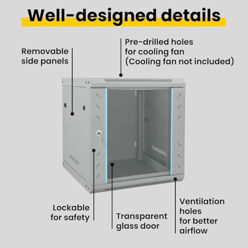 vidaXL Armoire réseau avec Stockage Gris 53 x 60 x 60 cm Acier, Meuble Moderne, Rangement de Bureau, Composants résistants, équipement Mural réseau, Organisateur Tech pour Job