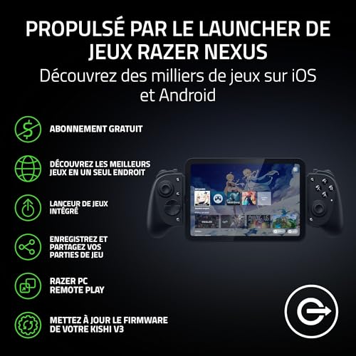 Razer Kishi V3 Pro - Contrôleur mobile complet pour iPhone, smartphones Android et tablettes 8" - USB-C Plug-and-Play - sticks analogiques anti-dérive (12 boutons - Sensa HD Haptics, Nexus App) Noir