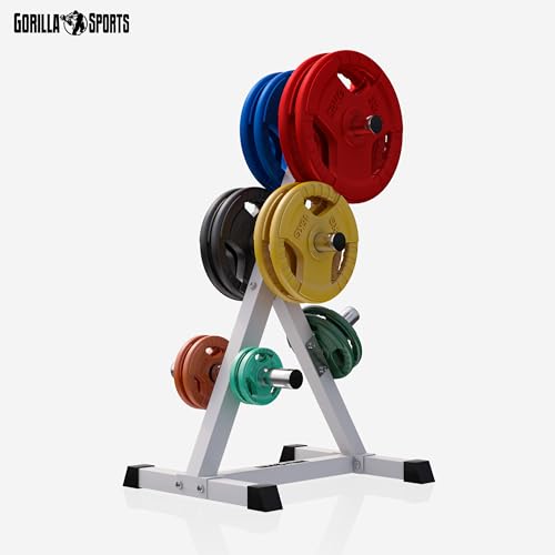 GORILLA SPORTS® Rack Rangement - 7 Supports, Pieds Protecteurs, Convient aux Plaques Olympiques 50/51mm, Acier, Charge Max 350kg, Noir - Support Halteres, Matériel de Musculation, Sport Maison