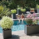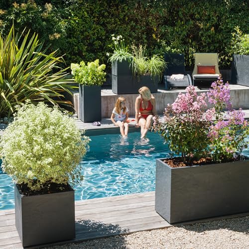 EDA - Muret Volcania 116 L - Décor Imitation Pierre - Utilisable à l'Intérieur et à l'Extérieur - Zone de Rétention d'eau pour Limiter l'Arrosage - 99,5 x 39,5 x 60 cm - Gris Anthracite