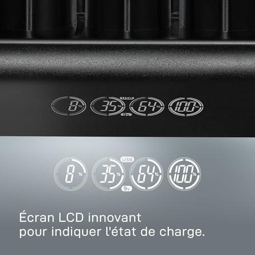 VARTA Chargeur de Piles, charge jusqu'à 4 AA/AAA/C/D/9V Piles rechargeables et appareils USB, LCD Universal Charger+, chargement à un seul emplacement, non équipé