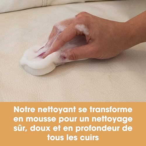 caractéristiques spécifiques‎4x pcs : Nettoyant + Conditionneur + Éponge + Microfibre, Entretien Protection des Cuirs, Kit Soin Complet du Cuir, Mousse et Crème Incolores, Sans Solvants ni Abrasifs