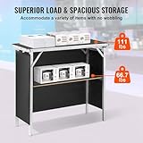 VEVOR Comptoir de Stand Foire Salon 97,5 x 38,5 x 87 cm Table de Bar Pliante Longue et Portable avec Sac de Transport Étagère de Rangement et Jupe Noire pour Fête Pique-Nique Exposition Commerciale
