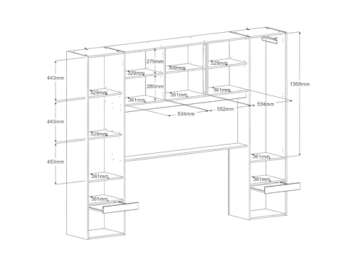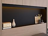 Vente-unique - Lit Pont 160 x 200 cm avec rangements - avec LEDs - Coloris : Naturel et Noir + Sommier + Matelas - VELONA