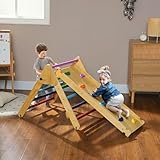 AIYAPLAY 3 en 1 Triangle Escalade Enfants, Rampe Double-Face pour Grimper & Glisser - Parcours motricité bébé en Bois, Aire de Jeux Enfant intérieur pour 18 à 48 Mois, Charge Max. 50 kg, Multicolore