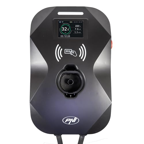 PNI Borne de Recharge KW11 16 A, 11 KW, pour véhicules électriques, 85 V-415 V, triphasée, câble Type 2 7 Broches, écran 3,5 Pouces, avec Bluetooth, contrôle par Application et Carte RFID, IP55