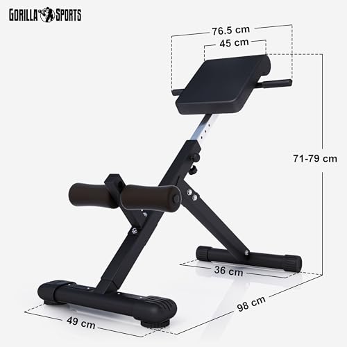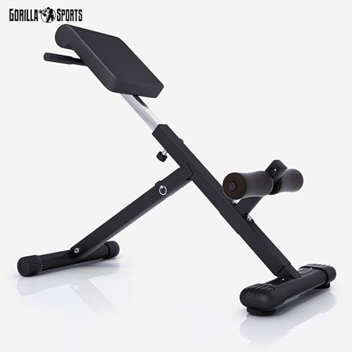 GORILLA SPORTS® Banc de Musculation pour Dos - Pliable, Réglable, Antidérapants, Charge Max. 120 kg, Noir/Blanc - Banc Abdominaux, Banc Romain, Hyperextension, Gym, Musculation, Entraînement, Fitness